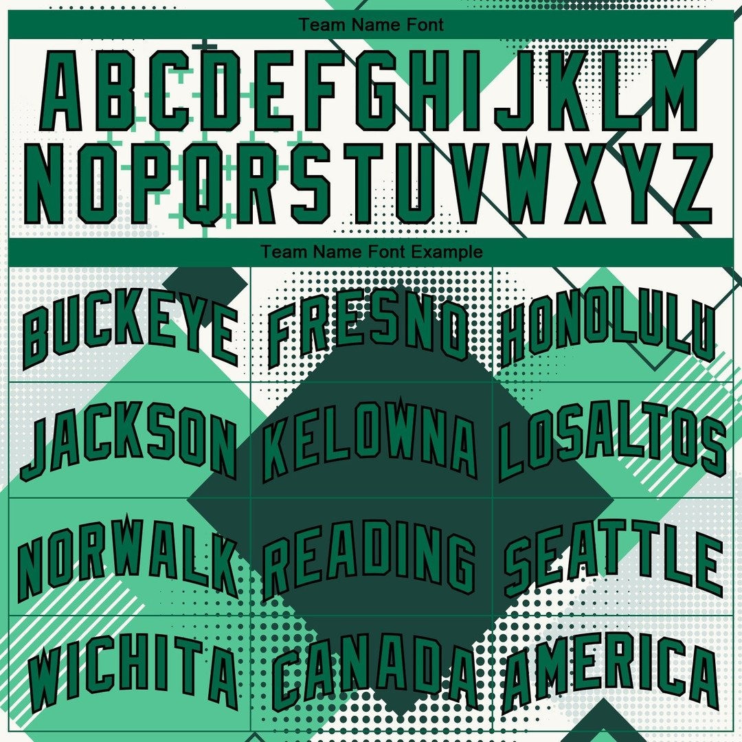White, Kelly Green & Black Geometric Shapes City Edition Custom Basketball Jerseys for Men and Women